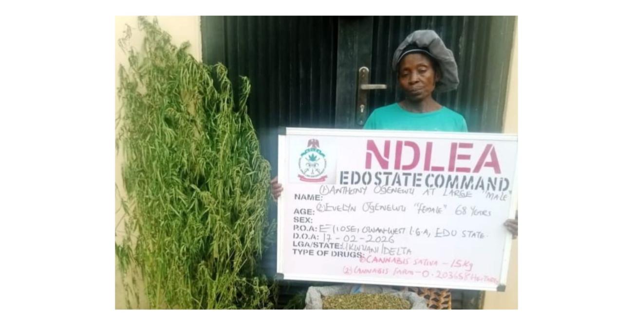 Meanwhile, in Edo State, NDLEA operatives raided cannabis farms in Owan West Local Government Area, destroying over 1,266 kilograms of cultivated skunk. During the operation, officers arrested a 68-year-old grandmother, Evelyn Ogenewu, alongside another suspect, while also recovering processed cannabis.