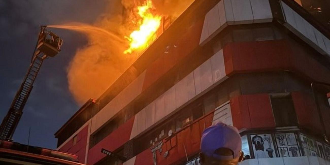 The fire reportedly broke out at about 4:40 p.m., sending thick smoke billowing from the multi-storey building and disrupting commercial activities in the area as emergency responders rushed to the scene.