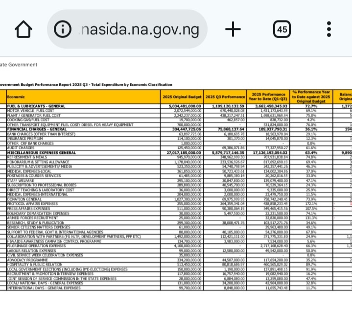 Findings from a SaharaReporters analysis of the state’s third-quarter 2025 budget performance show that between January and September 2025, spending on refreshments alone more than doubled the N300.5 million allocated to capital expenditure for the Rural Water Supply and Sanitation Agency, an essential sector responsible for providing clean and potable water to rural communities.